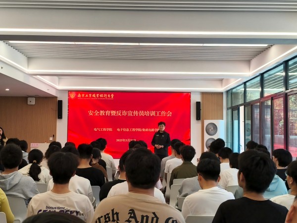 为提升同学们防范电信网络诈骗能力,加强反诈宣传教育,3月26日下午,电气工程学院、电子信息工程学院/集成电路学院联合开展班级反诈宣传员培训讲座,在学校保卫处支持下,特邀原南京市公安局刑警支队处级民警、南京市公安局反诈宣传金牌讲师陈红燕警官,在学生社区“匠心讲堂”开展《人这一生,都在为认知买单》为主题的反诈宣传讲座,相关辅导员、学院全体反诈宣传员以及学生代表参与学习。