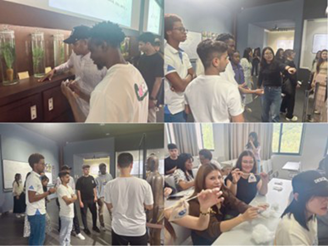 药用植物园则是一堂生动的“本草课”。在讲解员引导下,留学生们辨识紫苏、薄荷、金银花等常见药材,亲手触摸艾草的绒毛,轻嗅陈皮的香气。来自老挝的夏露指着一株形态独特的植物询问:“这种叶片有锯齿的草药叫什么?它的药效如何?”当得知眼前的“败酱草”具有清热解毒之效时,她立刻用手机拍下叶片特征:“我要把这些神奇的草木知识分享给家人。”