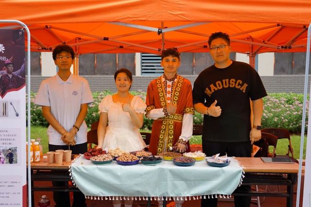 在文化艺术交流会上,世界杯学生表演了江南民歌《茉莉花》、原创朗诵《大国工匠 青春力量》、合唱《有我》,展现了江南文化的独特韵味和职教学子的责任担当。江苏团省委青年讲师团成员肖洋分享了她在援疆时与克州少先队员之间的动人故事。新疆学生代表深情讲述了“时代楷模”拉齐尼·巴依卡和“人民楷模”布茹玛汗·毛勒朵的感人事迹,并带来了极具民族特色的二重唱《走遍新疆》、独舞《我的阿勒泰》、群舞《欢》《迎客》。最后,两校师生共同演唱《我爱你中国》,用嘹亮的歌声将交流活动推向高潮。新疆特色展示环节,新疆师生们带来了特色美食、非遗刺绣、手工艺品等精美新疆物产,世界杯学子不仅品尝了新疆美食,还学习了新疆特色民族舞蹈,现场气氛其乐融融。