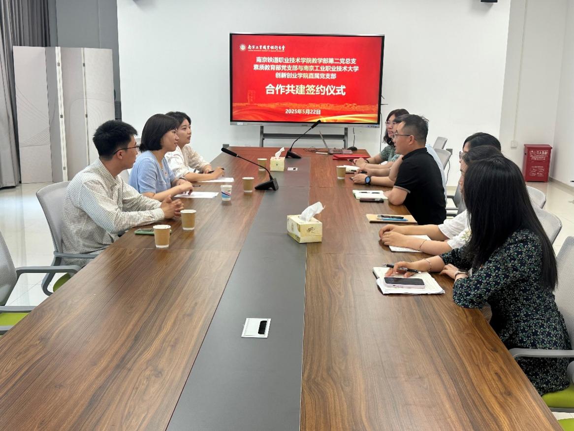 签约仪式现场,双方代表依次介绍了各自党支部在党建工作、业务发展等方面的基本情况。孙珏详细介绍了素质教育部党支部在党员教育、专业教学创新等方面的成果与特色;纪海波则分享了创新创业学院直属党支部在推动创新创业教育、培育学生创新能力等方面的经验与成果。双方还就未来合作共建的具体内容展开深入交流与探讨,积极探寻合作契合点。