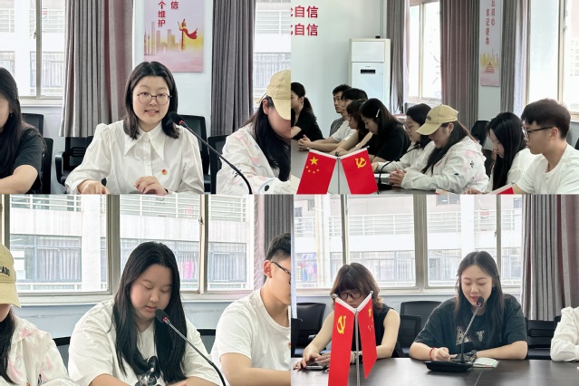 随后,毕业生党员代表分享自己的感悟。吴梓萌回顾了两届大学生职业规划大赛的备赛、参赛经历,讲述了自己作为南工青年践行“手脑并用,双手万能”工匠精神的心路历程,表达了对学校、党组织引领培养的感激之情。孙妮诺、王艺遐分享了作为学生干部、青年党员的责任与担当,从理论学习、专业实践等方面向学弟学妹传递了经验。张思源从专业竞赛、学生活动、志愿服务、乡村振兴项目等方面分享了自己的成长经历,表达了对母校、老师的感恩之情。
