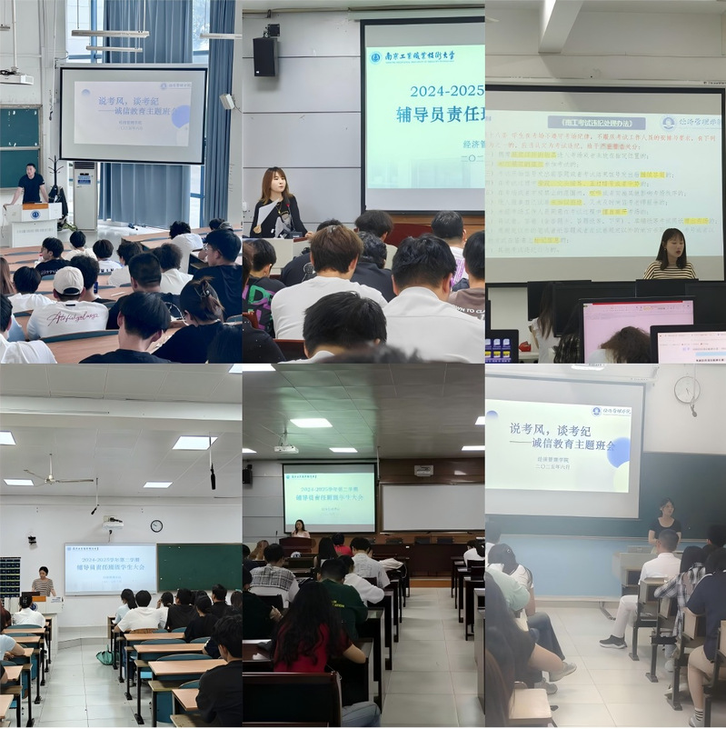 为进一步加强学风建设,营造诚信应考、积极备考的学习氛围,同时增强学生人身、交通、财物、网络等安全意识,6月12日—6月18日,经济管理学院组织开展了期末学生大会暨考风考纪主题教育活动。全体辅导员深入责任班级,引导同学们端正学习态度,严守考试纪律,为学期末的学业总结与诚信教育注入强劲动力。
