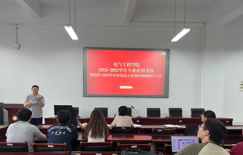 为进一步推动学院专业社团建设,提升社团活动质量,加强社团规范化管理,提升社团育人实效。6月20日,电气工程学院召开2024-2025学年专业社团考核暨2025-2026学年新申请社团答辩会。学院党委副书记、副院长吴佳男,分团委书记冯欣,校团委社团指导老师梅玉倩及相关专业指导教师参加会议。