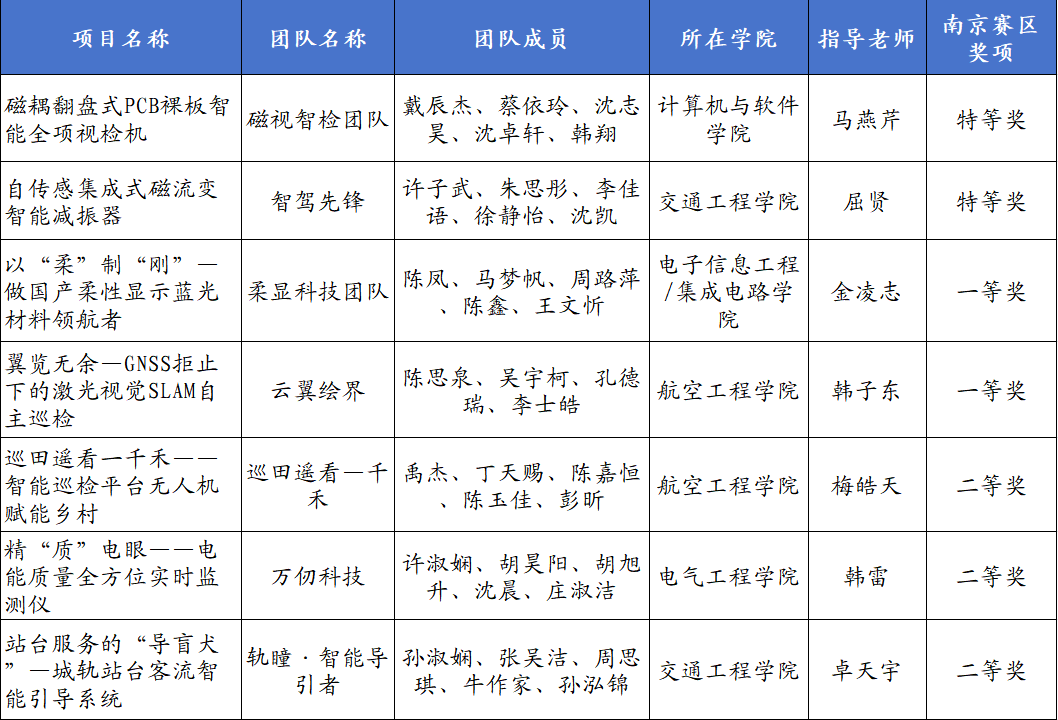 学校高度重视本项赛事,创新创业教育工作领导小组办公室牵头遴选优秀创新创业项目,做好项目辅导与赛事跟踪服务。本次比赛中,计算机与软件学院“磁视智检团队”(指导老师:马燕芹;成员:戴辰杰、蔡依玲、沈志昊、沈卓轩、韩翔)研发的《磁耦翻盘式PCB裸板智能全项视检机》项目,以及交通工程学院“智驾先锋”团队(指导老师:屈贤;成员:许子武、朱思彤、李佳语、徐静怡、沈凯)打造的《自传感集成式磁流变智能减振器》项目,凭借突出的创新性与实用性斩获特等奖,并获得晋级国赛资格。晋级国赛的团队将在8月代表中国青年创新力量和美国选手在总决赛中一较高下,成为推动中美关系健康发展的青年使者。