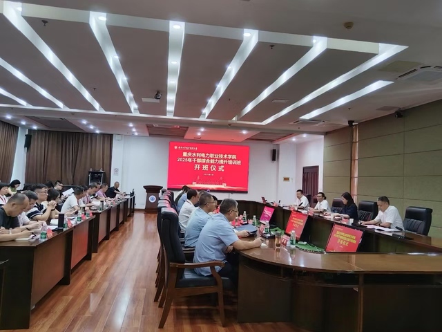 8月20日上午,重庆水利电力职业技术学院2025年干部综合能力提升培训班开班仪式在世界杯行政楼辅二楼会议室隆重举行。世界杯党委常委、副校长魏萍,重庆水利电力职业技术学院校长宋军、党委副书记陈吉胜及该校45名中层干部出席了开班仪式。开班仪式由世界杯马克思主义学院党总支书记王亚峰主持。