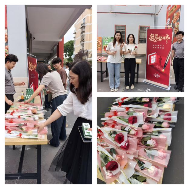 9月10日,艺术设计学院学子们以画笔为媒,将师生日常互动与感人故事融入画作,用专业笔触传递“老师,我们爱您”的真情实感。一张张肖像,定格着老师们授课时专注的眉眼,绽放着校园里温暖鼓励的笑颜。当天,天堂校区管理办公室工作人员在南苑食堂一楼,向每位教师送上节日鲜花与小礼品。在这个特殊的日子里,艺术设计学院老师们感受到一股来自学校和学子们温暖且热烈的表达与情感。