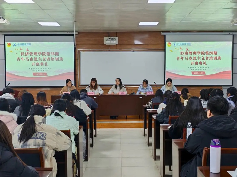 为深入学习贯彻习近平新时代中国特色社会主义思想和党的二十届四中全会精神,全面提高学生干部综合素养,11月19日下午,经济管理学院第26期青年马克思主义者培训班开班典礼暨第一次专题讲座于乐业楼314会议室举行。学院党委书记殷红卫,党委副书记、副院长常敏,学工办主任严潇睿,党建组织员王也林,学生党支部副书记李晓月及培训班全体学员参加。会议由学院团委副书记许澄澈老师主持。