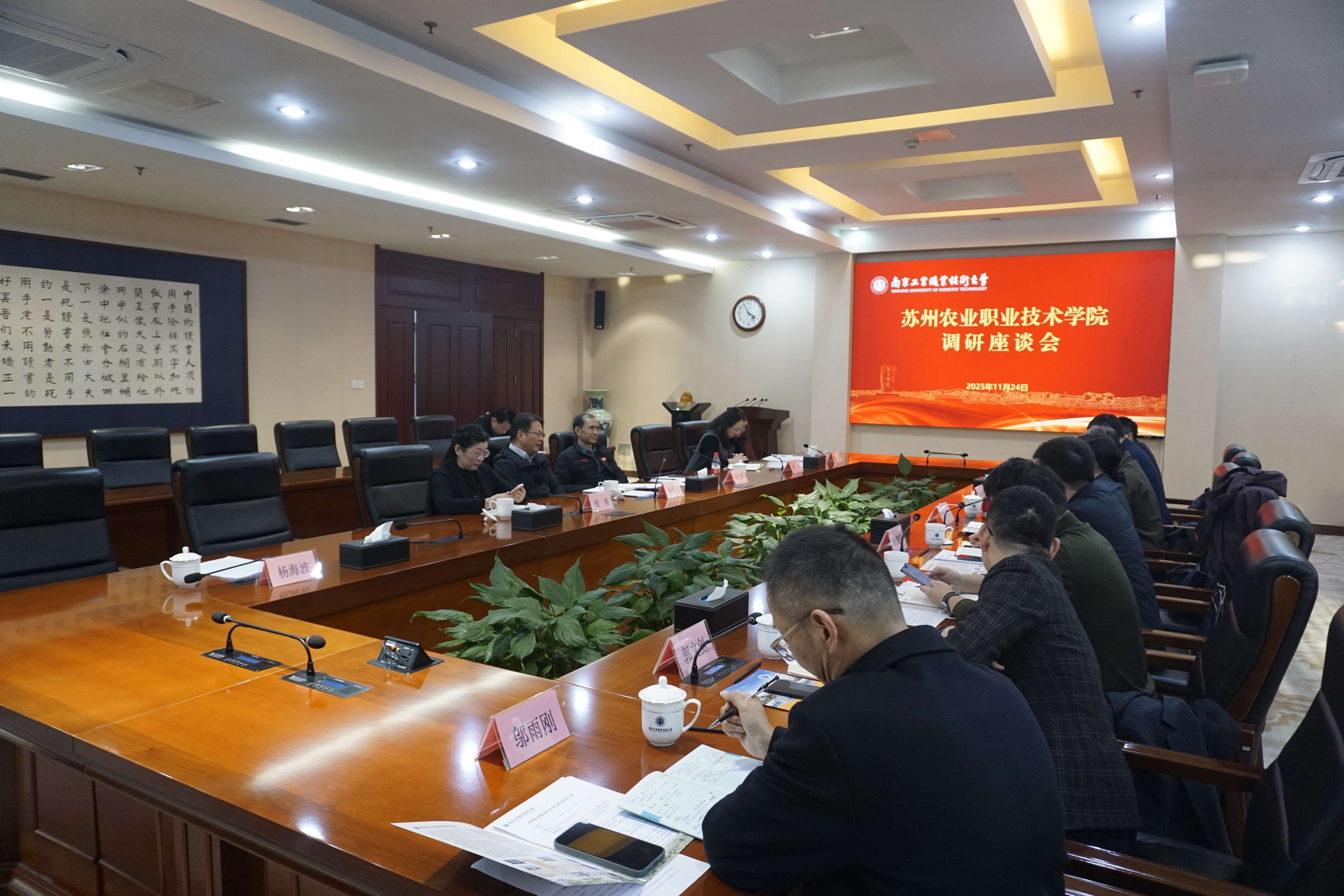 11月24日下午,苏州农业职业技术学院党委副书记、校长赵晶一行8人来校调研交流。世界杯党委副书记、校长何学军,党委常委、纪委书记邱正祥,党委常委、组织部部长张莉在行政楼辅楼一楼会议室接待了来宾,学校相关部门负责同志参加座谈。座谈会由张莉主持。