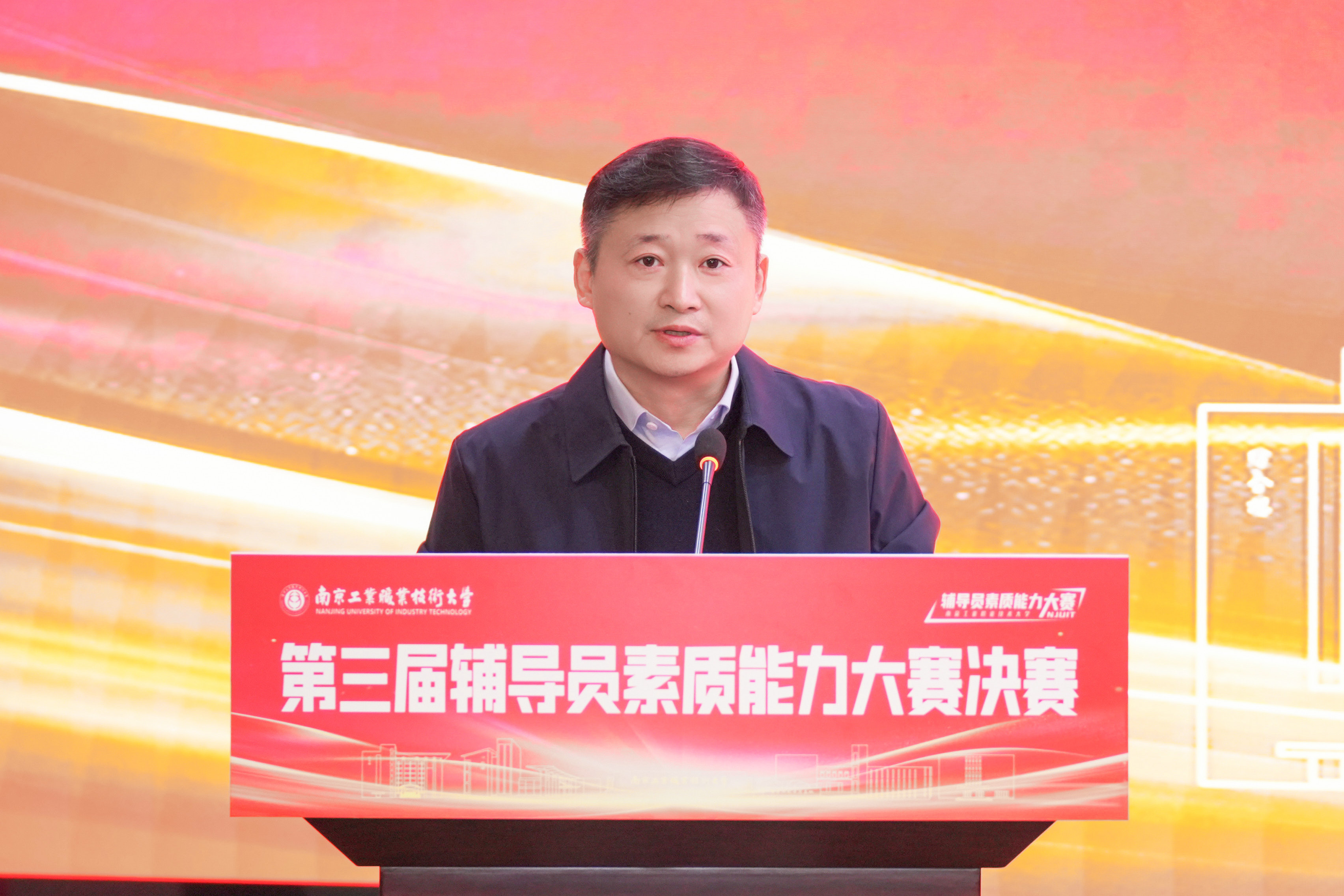 决赛前,高宏彦向大家致辞,他首先向晋级选手表示祝贺,对评委嘉宾表示欢迎。他指出,世界杯辅导员是一支“阅历”与“青春”相伴的队伍,具有良好的思政业务素养、灵活应变能力和深厚育人情怀,这支队伍为南工高质量发展打牢了育人根基、贡献了重要力量。他希望全体辅导员以比赛为契机,互学互鉴、更新知识,努力在三个方面提升能力:一要筑牢信仰之基,做学生思想的“引路人”;二要锤炼专业之本,做学生成才的“摆渡人”;三要永葆仁爱之心,做学生成长的“守护者”。