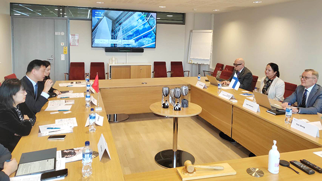 与中国驻芬兰大使馆临时代办陈会新会谈