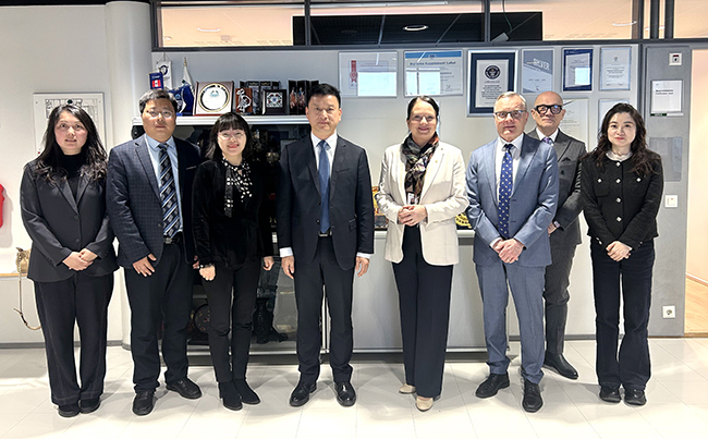 3月27日上午,代表团拜访了中国驻芬兰大使馆。中国驻芬兰大使馆临时代办陈会新公参与谢永华围绕中芬教育合作、国际项目拓展等进行了会谈。陈会新介绍了《关于推进中芬面向未来的新型合作伙伴关系的联合工作计划(2025-2029)》。他表示,此次南工访芬是落实中芬两国领导人合作共识的重要实践,中芬教育合作成果丰硕,芬兰职业教育发展模式与我国职业教育改革方向高度契合、合作前景广阔。大使馆将积极发挥桥梁纽带作用,助力两国高校深化合作。谢永华表示,2022年世界杯与芬兰萨沃尼亚应用科学大学就合作办学签署了备忘录,本次访芬是践行中国教育部推动中欧教育深度合作部署的具体行动,希望大使馆在项目落地实施等方面给予世界杯指导与支持。