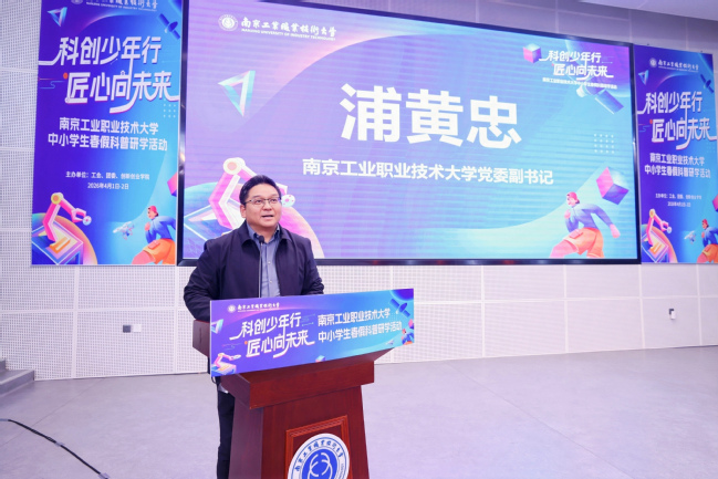 4月1日上午,活动开幕式在学校双创大楼创业讲堂隆重举行。校党委副书记浦黄忠出席开幕式并致辞,工会、团委、创新创业学院等相关部门负责人,以及参与活动的中小学生代表、家长代表共同出席了本次开幕式。