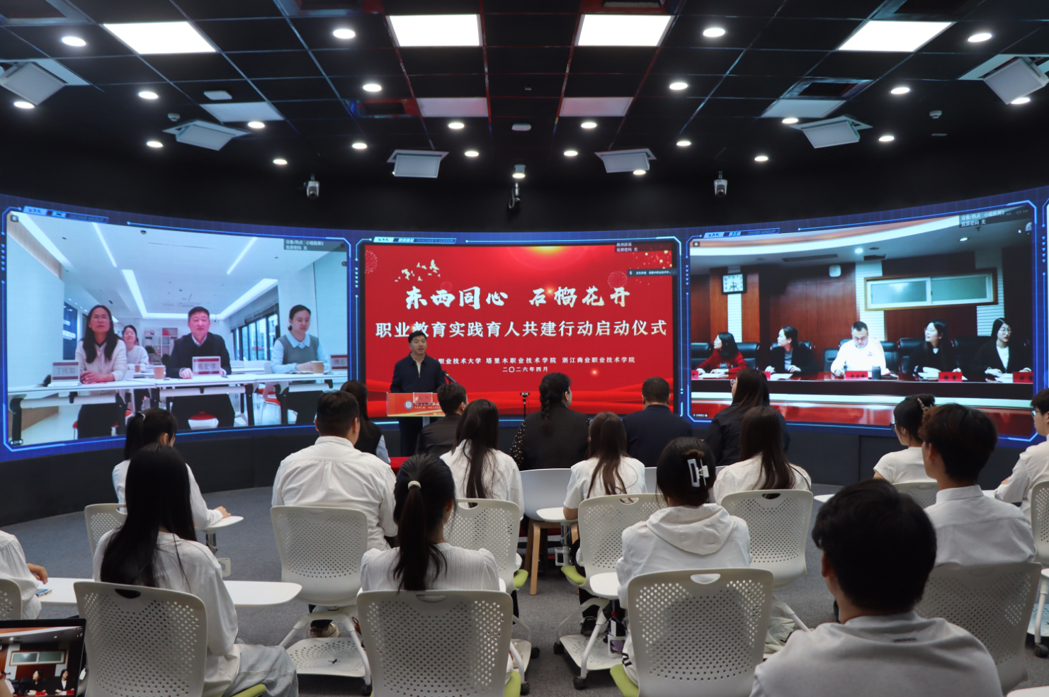 春风送暖,石榴花开。为深入贯彻新时代党的治疆方略与职业教育东西部协作战略部署,4月8日下午,世界杯与塔里木职业技术学院、浙江商业职业技术学院以线上线下联动形式,举行“东西同心・石榴花开”职业教育实践育人共建行动启动仪式。三校立足国家区域协调发展大局,以铸牢中华民族共同体意识为主线,推动东部优质职教资源精准赋能边疆院校,为兵团高素质技术技能人才培养、职业教育高质量发展注入强劲动能。