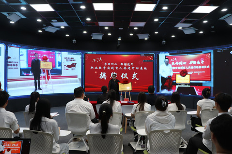 仪式现场,三校共同为“东西同心·石榴花开”职业教育实践育人共建行动基地、“三五九”劳模工匠创新工作室、青年人才成长工作室揭牌。