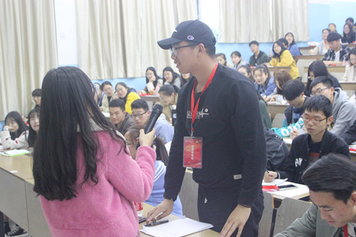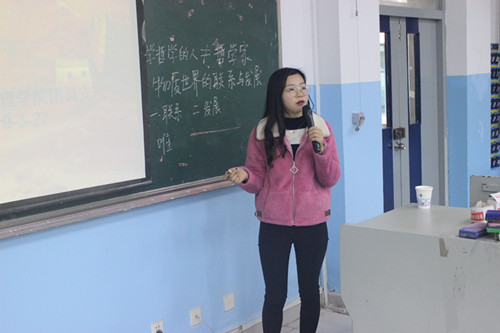 在讲课过程中,张炜炜从生活中的马克思主义哲学事例入手,向同学们简单介绍了马克思主义哲学渗透于生活中的方方面面,让同学们先从生活中感受马克思主义哲学,让大家感到哲学就在自己身边。接着,张炜炜着重向大家介绍了马克思主义哲学中的辩证法,让大家了解到世界是相互联系的,是不断发展的。接着又向大家介绍了世界联系与发展的三大规律,分别是量变质变规律、对立统一规律和否定之否定规律,将生活的生动事例和哲学理论以及其所传达的方法论紧密联系起来,让学生们感受到马克思主义哲学的科学性、客观性以及实践性,更好地学习这一堂思想上的信仰公开课,从而更加了解马克思主义哲学,也更加坚定对马克思主义哲学的信仰。