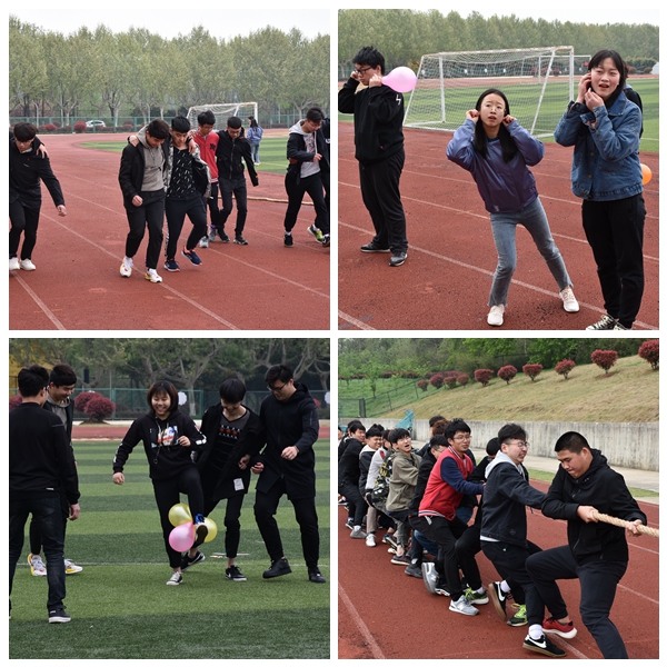 活动内容以放松身心,愉悦生活为主旨,设置了如“两人三足”、“你比我猜”、“拔河”等结合趣味性和合作性于一体的比赛项目。首先进行的是团队合作项目“两人三足”环节,运动员们脚绑脚,肩并肩,齐喊着口号,跨着大步向终点迈进,通过时间长短来评比每组同学之间的配合能力。在第一个热身活动后,同学们个个精神抖擞,表现出了极佳的比赛状态。“你比我猜”环节,两名同学为一组,一人进行肢体动作比划,一人猜,现场气氛活跃,不时传来欢笑声,将活动推向高潮。最后进行的是拔河比赛,参加比赛两组同学们奋力拉动绳子,高喊口号,周围的观众也兴致饱满地为他们呐喊助威。活动结束后,同学们都感到意犹未尽,表示在活动中身体不仅得到了锻炼,也增进了各专业同学之间的友谊和交流。