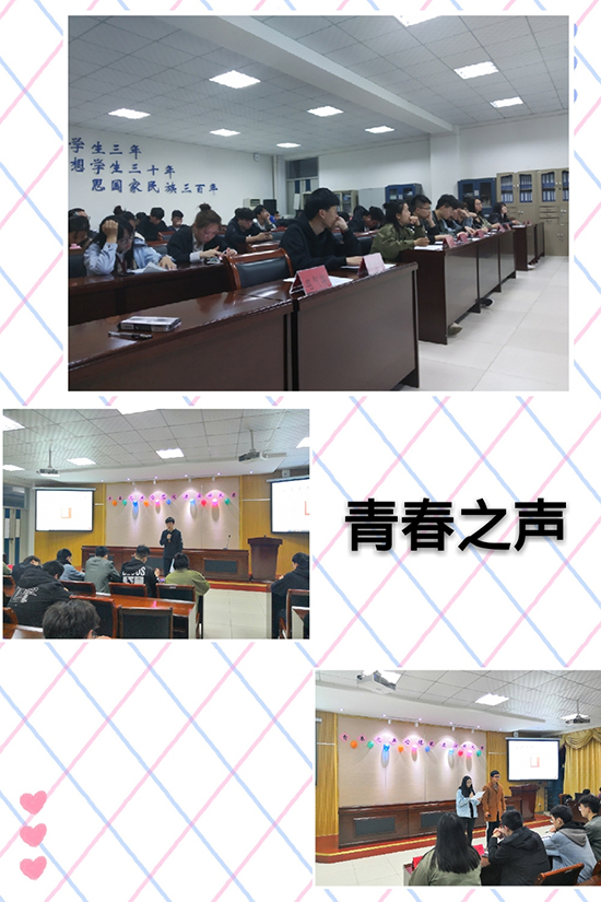 为促进大学生心理健康发展,加强计算机与软件学院心理健康教育工作,院团总支心理部于4月15日晚19:00在敬业楼415举办“青春之声”心理健康演讲比赛。