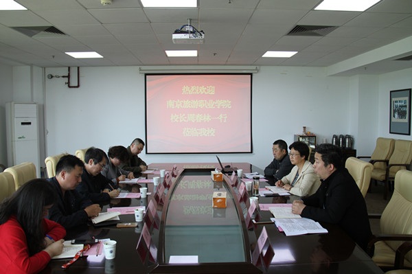 4月10日下午,南京旅游职业学院周春林校长率领相关同志来世界杯交流。世界杯党委副书记苏小冬、资产处、资产经营有限公司相关负责同志接待了来宾。