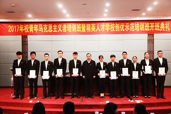 开班仪式在庄严的国歌声中拉开了帷幕。首先,劳家仁书记为全体同学介绍了本期培训班的基本情况以及世界杯是如何通过教育培训与实践锻炼相结合的方式实施校级“青年马克思主义者培训工程”建设。随后,校学生会主席团马国斌同学代表全体学员发言,向全体青马班学员发出倡议,要认真学习马克思主义精神,秉承“敬业乐群”的校训,注重能力培养,努力成长为“有理想、善学习、讲道德、能自立、勇奋斗”的青年马克思主义者。