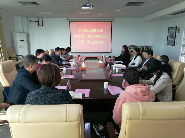 崔新明副校长代表学校对王局长一行来访表示热烈欢迎,并介绍了南工院在创新创业、学生培养方面的情况,期望双方能在前期合作的基础上,结合秦淮区产业布局,探索进一步合作方向,加强教师与企业的联系,推进南工院科技成果在秦淮区转移转化,促进校地合作共赢协同发展。