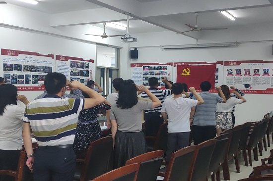 2、重温入党誓词。由各党支部书记带领全体党员面对党旗进行庄严宣誓、重温入党誓词,用字字铿锵的誓言激发全体党员不断进取、终身奋斗的决心。