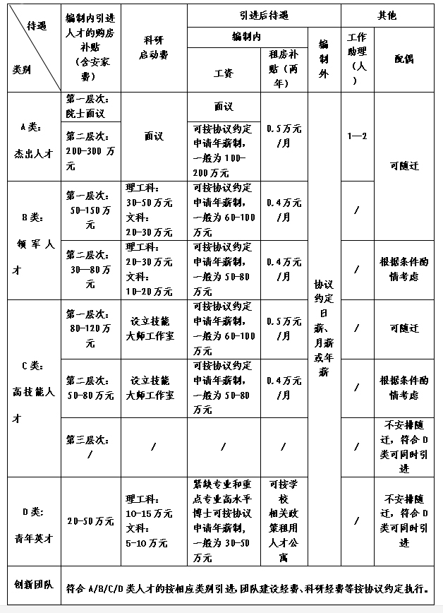 2.引进人才待遇采用一人一议方式。