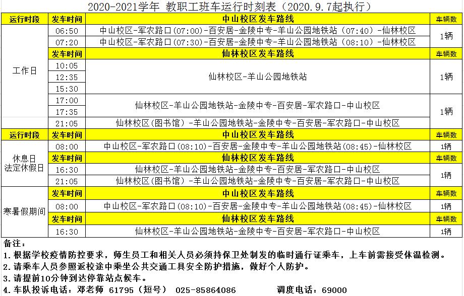 2020-2021学年校车运行时刻表