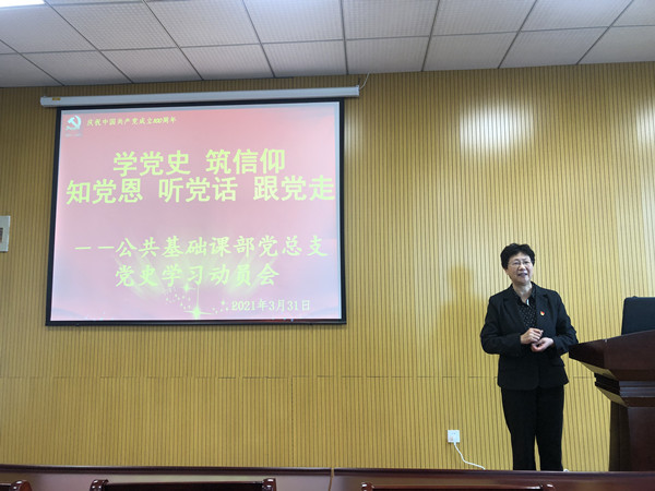 3月31日,公共基础课部召开“学党史 筑信仰 知党恩 听党话 跟党走”党史学习教育动员大会。学校党委常委、副校长苏小冬出席会议并作动员报告,部门全体教师参加会议。