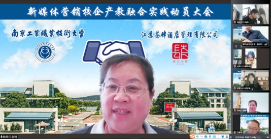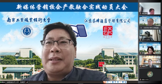 产教融合、校企协同育人是职业教育人才培养的重要途径。4月13日下午,商务贸易学院与江苏茶肆酒店管理有限公司在线上举办了新媒体营销校企产教融合实践动员会。公司总经理孙绪芹、营销部经理陆璇,学院党总支书记陈桂兰、院长阮晓文、电子商务团队相关老师和电子商务专业学生共同参与了此次会议。