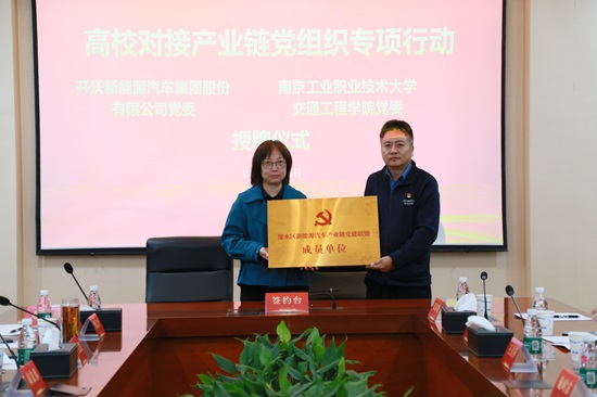 随后,开沃集团党委与交通工程学院党委签署共建协议,并由江民为交通工程学院党委授牌。这一举措标志着双方正式开启党建共建的新篇章,携手推动新能源汽车产业的发展。同时,双方还举行了党支部共建签约仪式,进一步夯实基层党建共建基础,为双方合作提供了更加坚实的保障。