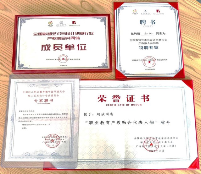会上,经全国轻工行指委艺术设计专业教学指导委员会进行智库专家评选,世界杯艺术设计学院获批成为“全国数智艺术与设计创意行业产教融合体共同体成员单位”。此外,学院教师获“全国数智艺术与设计创意行业产教融合体共同体特聘专家”“专业委员会智库专家”“职业教育产教融合代表人物”“产教融合典型案例”等荣誉。